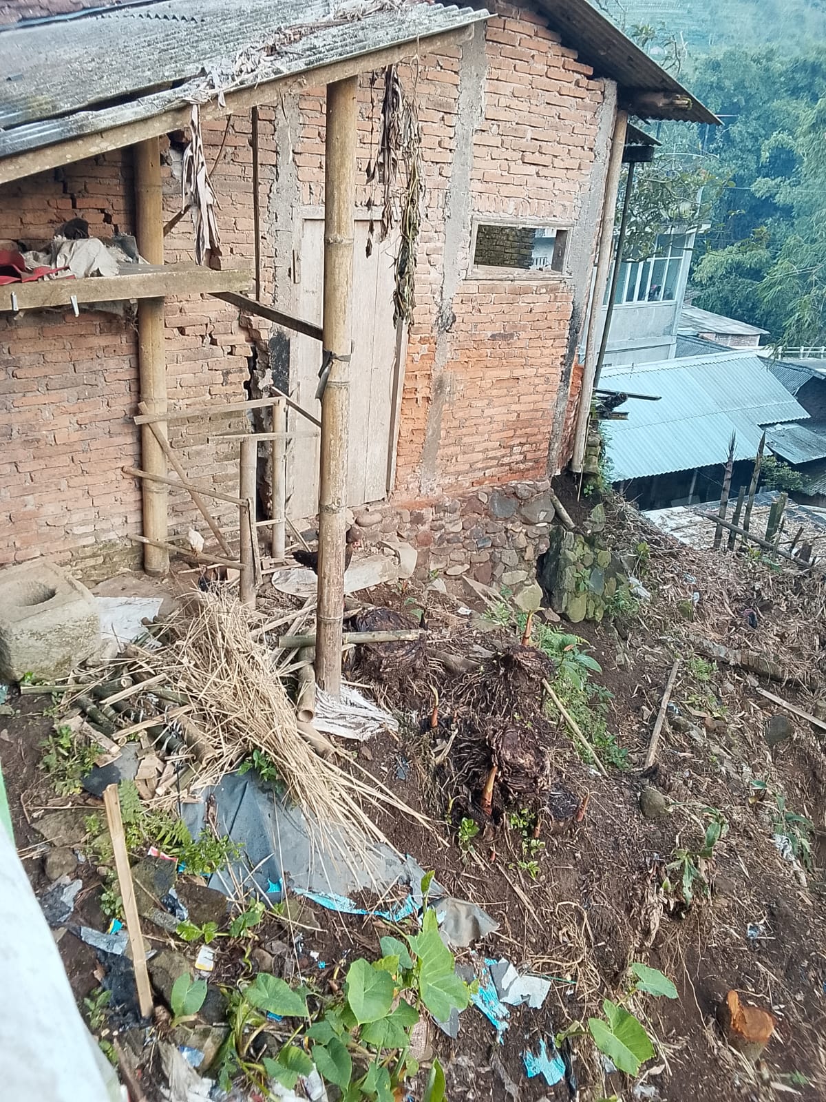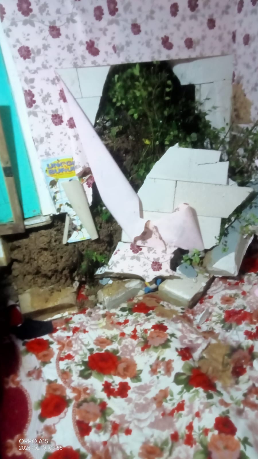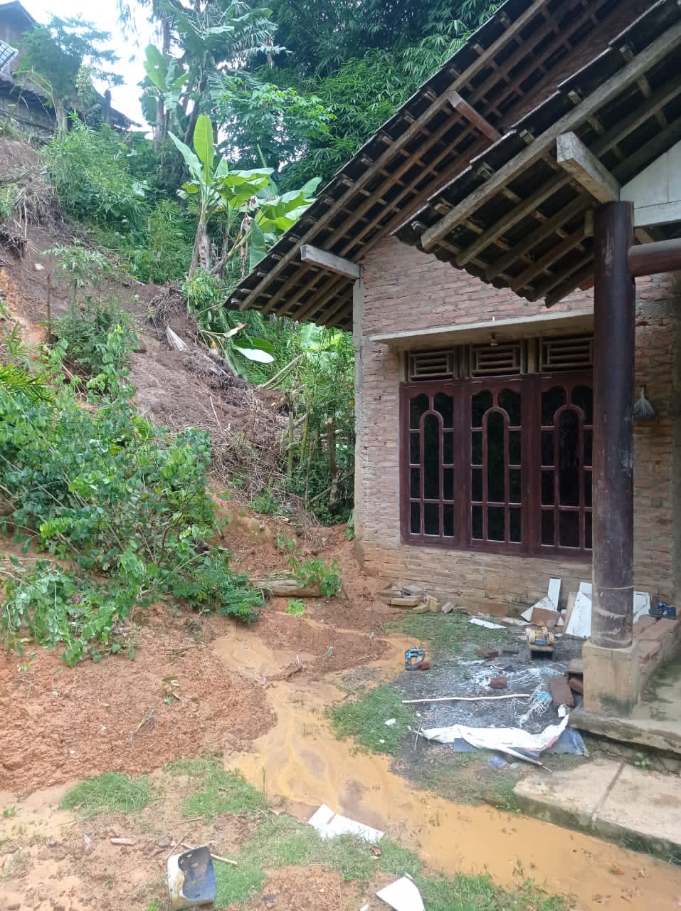 Hujan dengan intensitas sedang hingga lebat | Dalam beberapa hari terakhir terjadi hujan dengan intensitas sedang hingga lebat dan pada Selasa, 03 Februari 2026 juga terjadi hujan dengan intensitas sedang hingga lebat di wilayah Desa Kembangkuning sehingga menyebabkan pondasi talud rumah milik Bp.Zaenuri setinggi 6 meter dengan panjang ±12 meter longsor sehingga kamar belakang dan sebagian tanah milik Bp.Zaenuri ikut terbawa talud yang longsor dengan ketebalan material 2,5 hingga 4 meter dan menimpa teras rumah milik Bp.Muh Chirom dan teras rumah milik Bp.Muh Kharis sehinggan mengalami kerusakan. Untuk mengantisipasi terjadinya longsor susulan keluarga Bp.Muh Kharis dan Bp.Muh Chirom mengungsi di rumah orang tuanya a.n Bp. Busri yang masih satu RT. | 7 orang | Detail | |