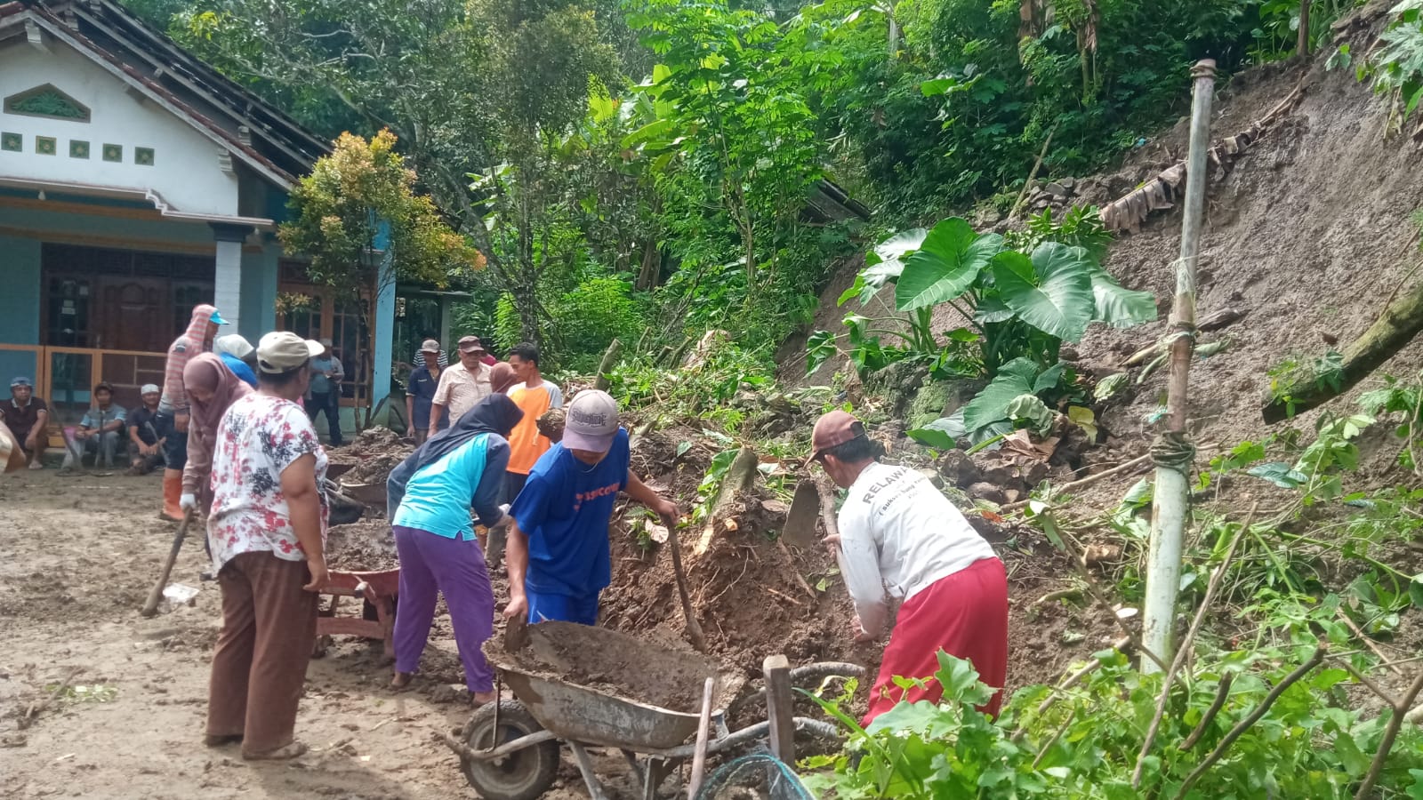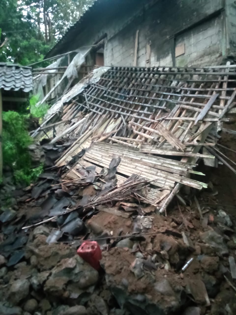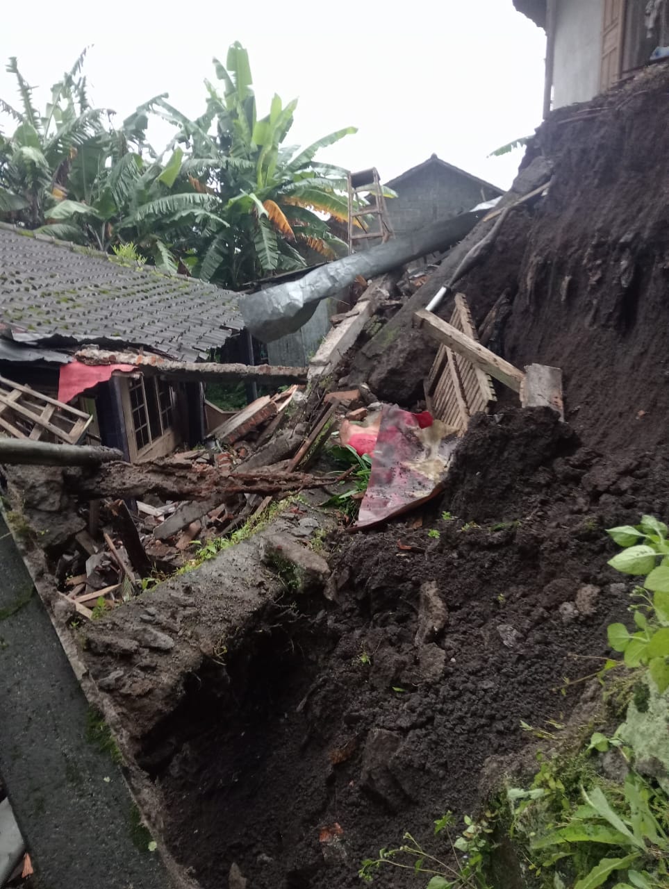 Hujan dengan intensitas sedang hingga lebat | Dalam beberapa hari terakhir terjadi hujan dengan intensitas sedang hingga lebat dan pada Selasa, 03 Februari 2026 juga terjadi hujan dengan intensitas sedang hingga lebat di wilayah Desa Kembangkuning sehingga menyebabkan pondasi talud rumah milik Bp.Zaenuri setinggi 6 meter dengan panjang ±12 meter longsor sehingga kamar belakang dan sebagian tanah milik Bp.Zaenuri ikut terbawa talud yang longsor dengan ketebalan material 2,5 hingga 4 meter dan menimpa teras rumah milik Bp.Muh Chirom dan teras rumah milik Bp.Muh Kharis sehinggan mengalami kerusakan. Untuk mengantisipasi terjadinya longsor susulan keluarga Bp.Muh Kharis dan Bp.Muh Chirom mengungsi di rumah orang tuanya a.n Bp. Busri yang masih satu RT. | 7 orang | Detail | |